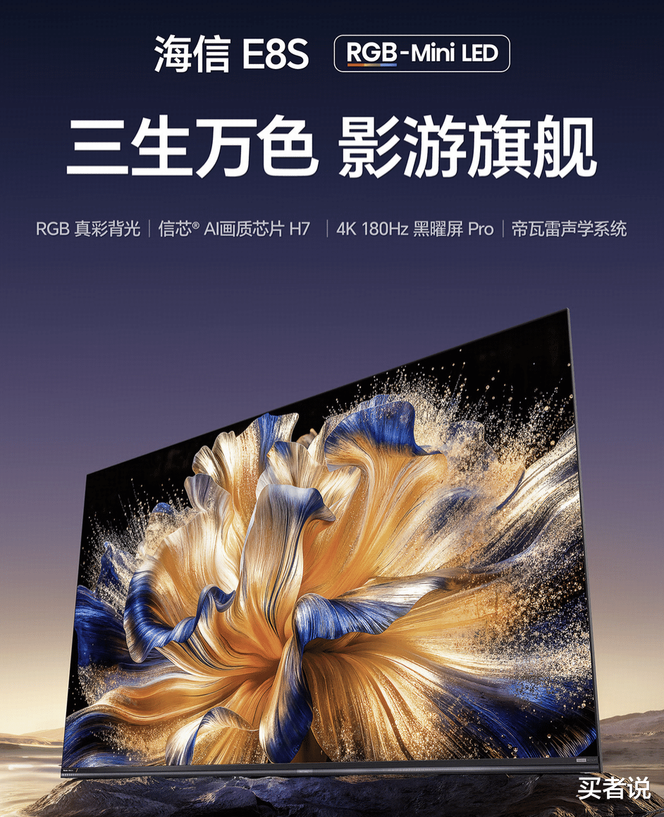 海信E8S是基于RGB-MiniLED的旗舰产品,定位高,售价也比较高。