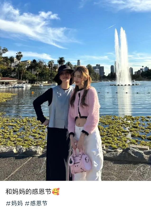 一张喷泉前的照片也暴露了两人私下里真正的母女关系。