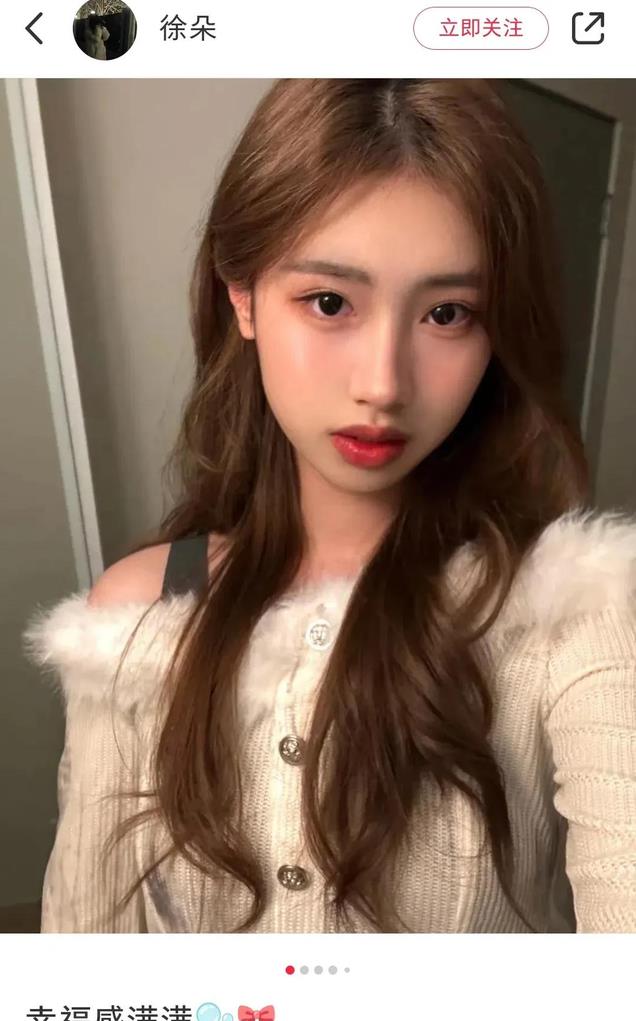 照片上徐朵皮肤细腻白嫩,化着精致的妆容。