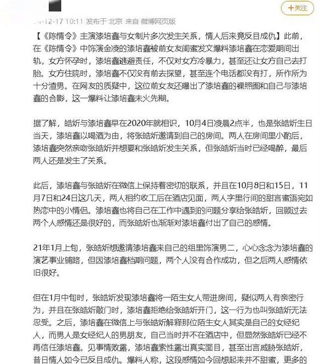 我认为,漆培鑫更多的是为了自己的偶像包袱,毕竟明星最怕的就是被爆出那些有关私生活不干净的消息。