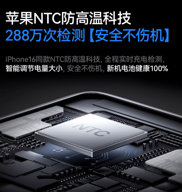 在散热层面西圣 PB-S 还采用创新的Air-DDVT 双层高导热流散热结构,以及MPC智能控温算法、NTC控温阵列技术,在技术层面远超市面上大部分产品的散热标准,即使长时间进行高功率补电也依旧保持低温控制,确保了充电过程的安全可靠。