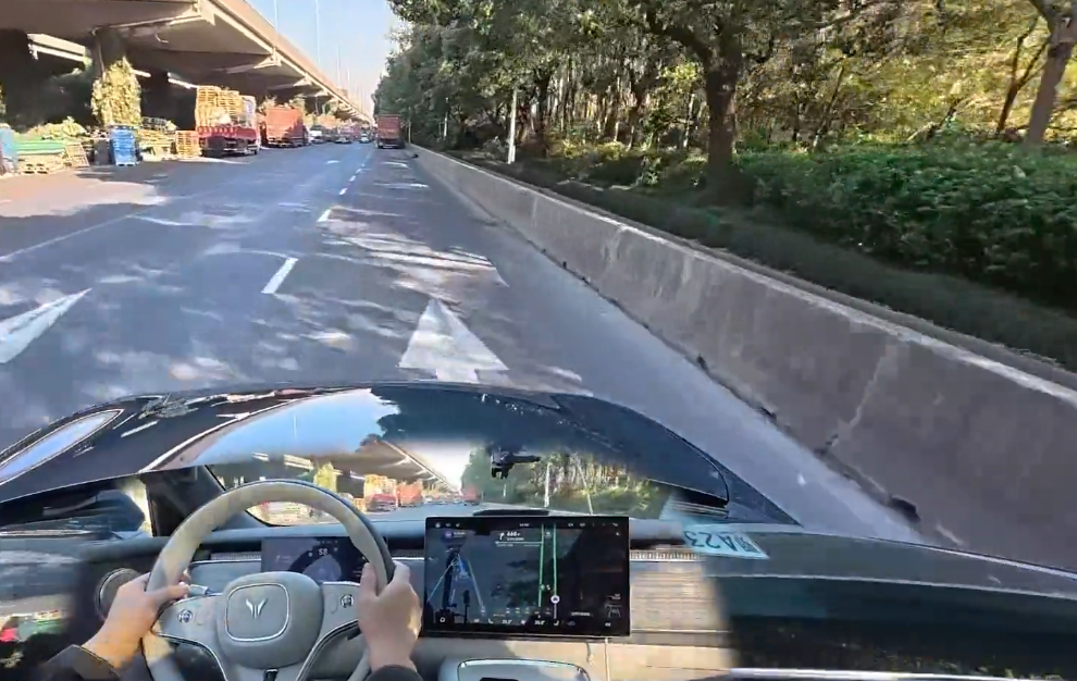 第二关拥堵城区,考验车辆对红绿灯识别和启停流畅程度,五款车在大部分路况都做得很好,但偶尔也会有异常,例如智己LS6在红灯前刹车不及时,压到了斑马线;小鹏G7在绿灯亮起后不启动,耽误后方车辆起步。其余三款车型均能准确识别红绿灯,这一点要予以好评。在通过大卡车密集的路段,全新岚图知音提前预判到障碍之后,会减速并变道,而理想i6在变道时机上把控有些迟疑,所以临近障碍没有多余的空间变道,只能等待旁边大卡车避让。虽然理想i6新推出了VLA司机大模型,但“小理师傅”听懂的指令并不多,只有简单的加速、减速、变道和停车等。在拥堵城区实测阶段,全新岚图知音接管0次,理想i6为1次,其余车型均为2次。