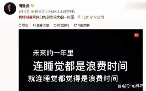加入小米后,周受资设定了明确的目标 —— 三年内助力小米实现上市。为达成这一目标,他充分利用人脉资源,积极与各界人士建立联系,拓展业务合作。他的工作安排极为紧凑,每日会议场次最多可达10场,日均工作时长高达15小时,甚至周末也坚守岗位。他曾在微博表示,未来一年,连睡觉都觉得是在浪费时间。雷军也曾评价他,拥有一种对世界充满激情的进取精神。