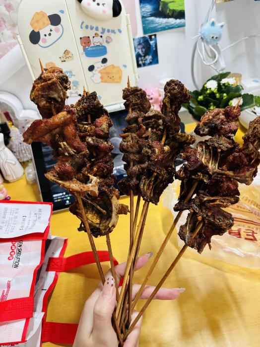 东北风味鸡架,有熏制和凉拌两种。熏鸡架香入味,越啃越香。凉拌鸡架酸甜辣口,解腻开胃。还有各种炸串,外酥里嫩,是重口味星人的快乐源泉。