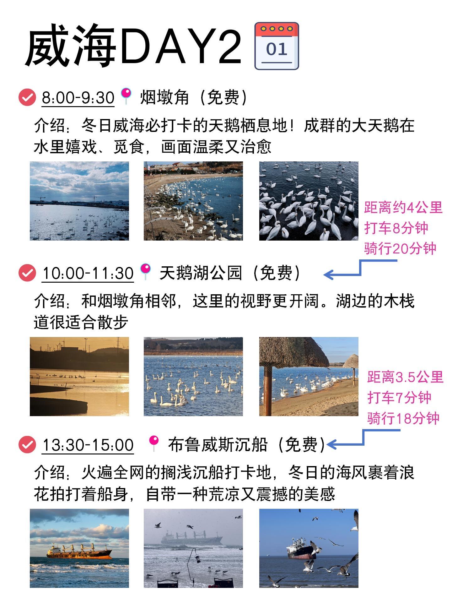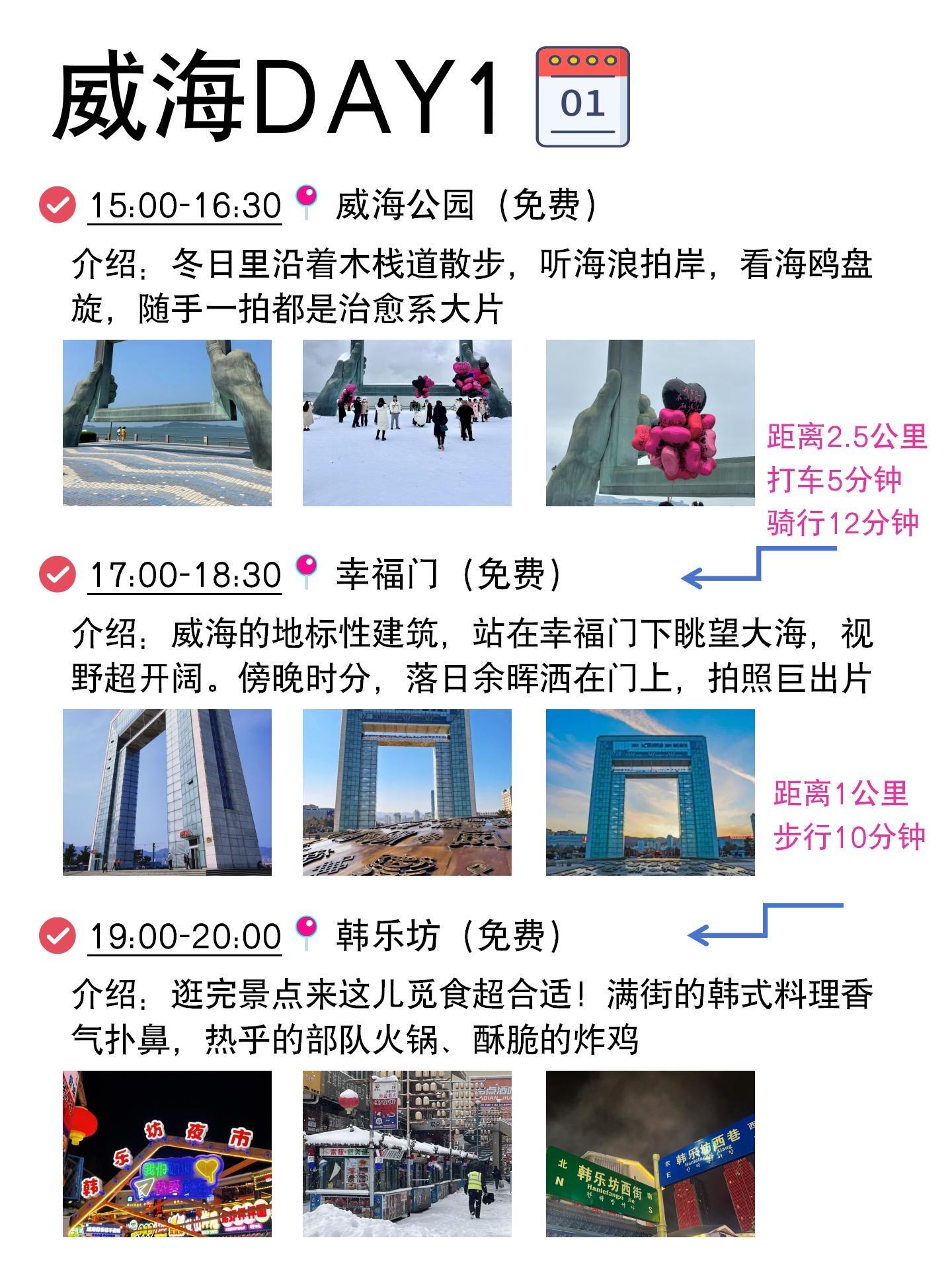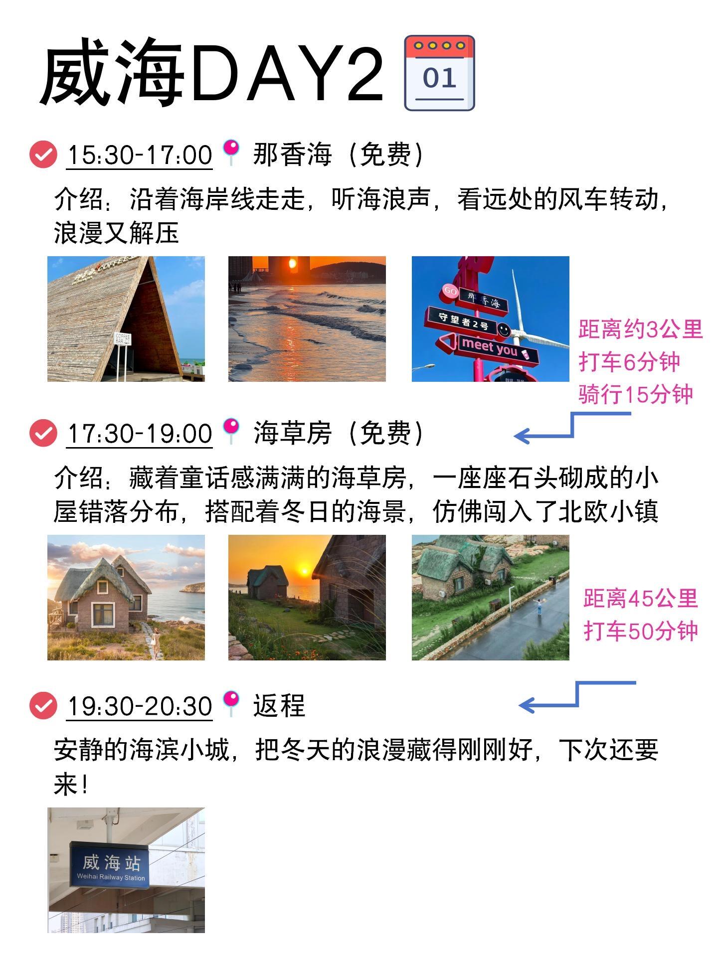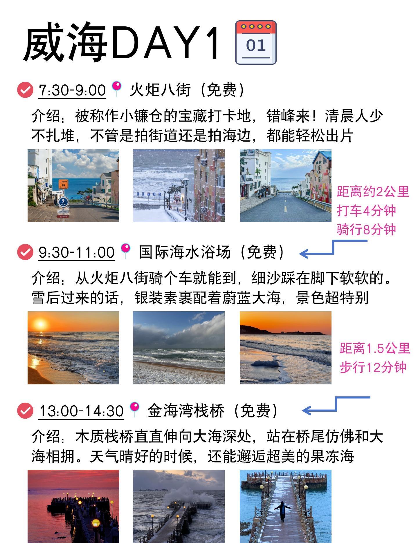 出发威海前真的做足了功课📖,生怕旅途中绕来绕去走冤枉路!特意根据网上的攻略和自己想去的地方,重新排了行程✨,这趟玩下来全程丝滑,每天打卡几个景点,悠闲又自在