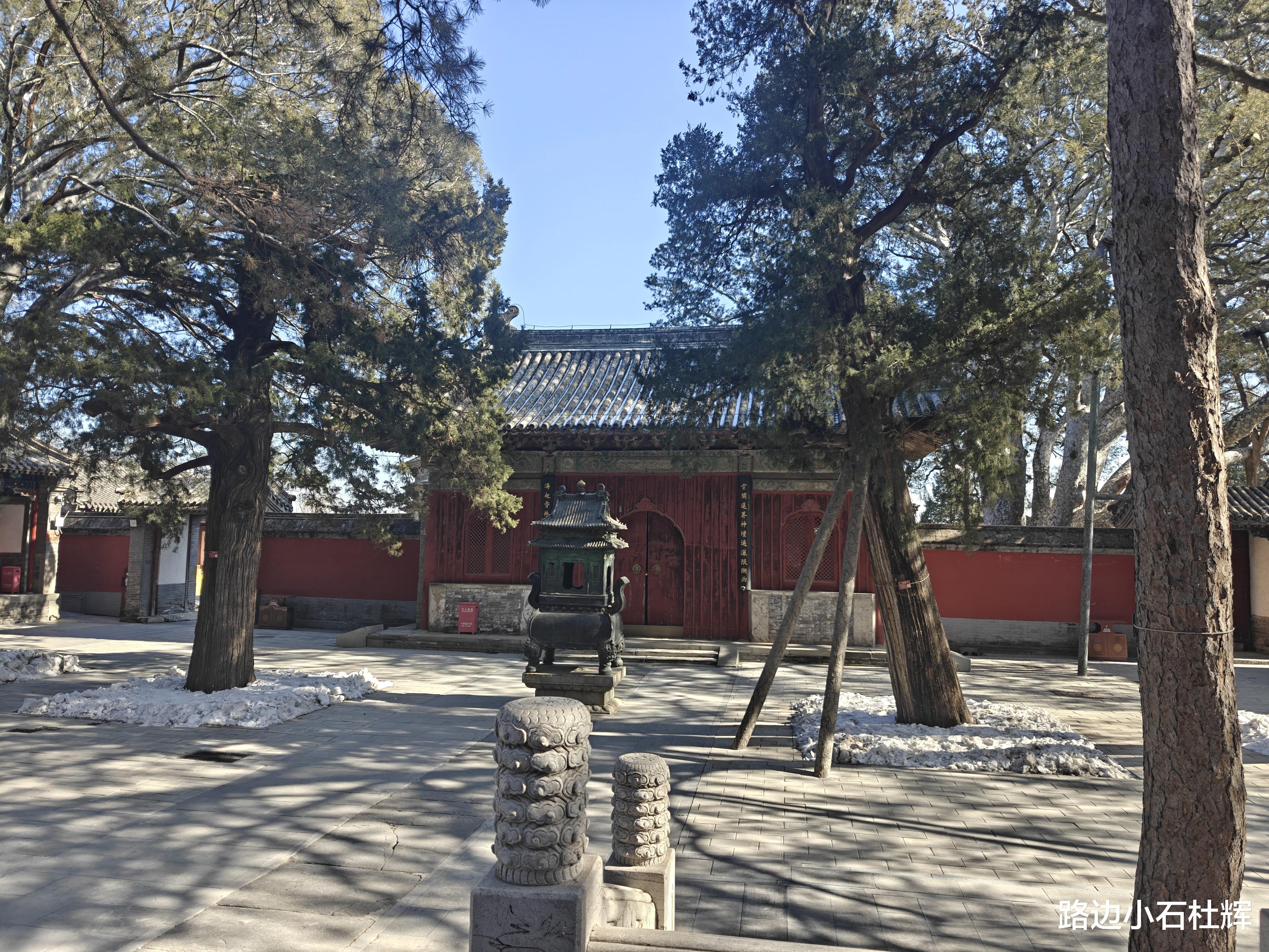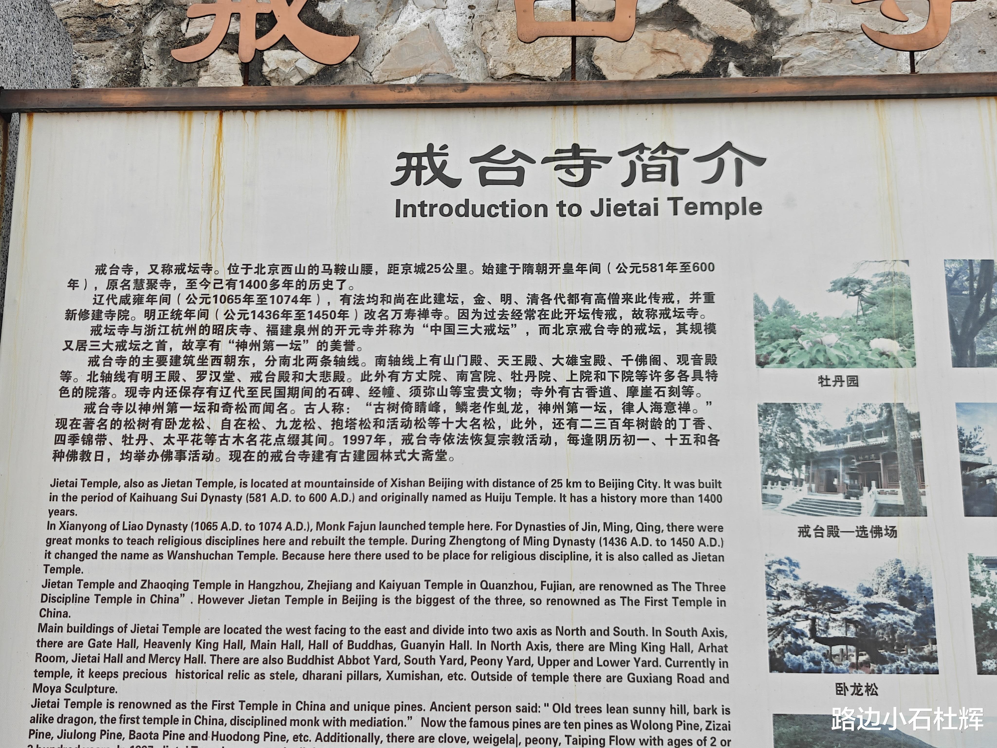 戒台寺建于山坡,腿脚不便的游客不宜游览。寺庙所处偏僻,公交不便、走路不近,最好是自驾或打车来此。寺门口正面有一小停车场,车位不多,淡季可停此,旺季还是直接停在下面的大停车场,省得走冤枉路。大停车场下车后走几百米或爬台阶直上就是山门。门票45元,相较于北京其他庙宇稍贵。