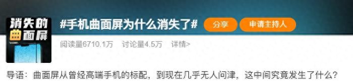 手机曲面屏为什么消失了的话题,一度登上了热搜。