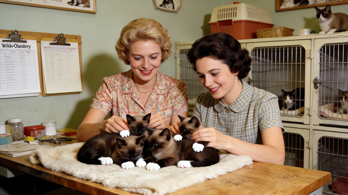 为稳定这一独特特征,Dorothy 尝试用带有“燕尾服” 斑纹的美国短毛猫与白脚暹罗猫杂交。两种猫的白斑基因发生奇妙交融:暹罗猫的重点色基因(C 基因)与美短的显性白斑基因(S 基因)相互作用,孕育出兼具深色肢端与白色 “手套” 的后代。1960 年代末,她将这一品种命名为 “Silver Laces”,但因斑纹遗传不稳定、繁育难度大,初期仅能作为展示猫,未获品种认可。