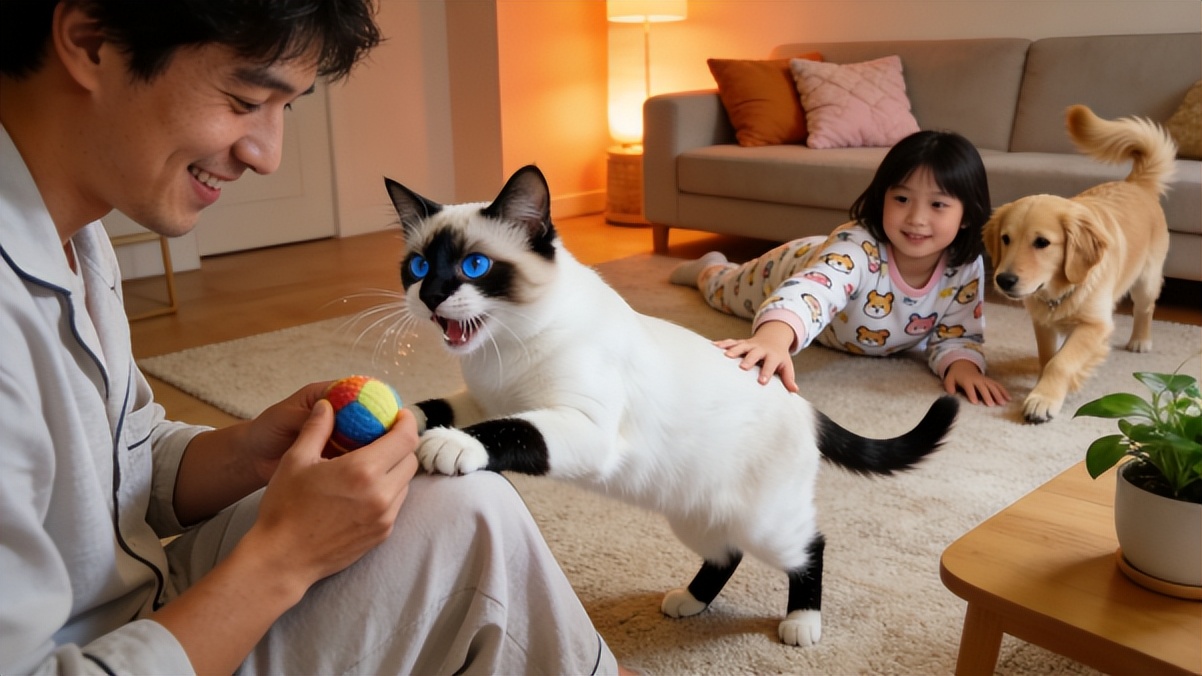 作为 “高能健谈者”,它们继承了暹罗猫的发声天赋:会用不同声调表达需求 —— 饿时发出短促高频叫,开心时发出轻柔颤音,不满时则用低沉呼噜声抗议,声音频率比东方长毛猫更丰富。每日活动量中等,喜欢攀爬猫爬架、玩逗猫棒,尤其擅长 “捡球游戏”,能快速学会把小球叼回主人手中,智商水平在短毛猫中排名前十。