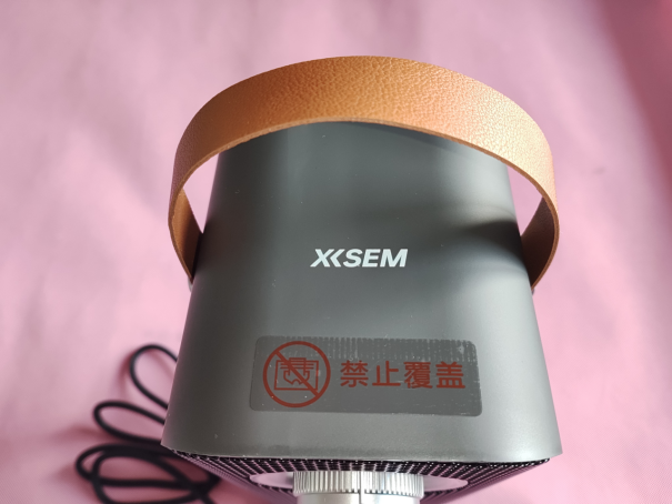 操作区域设计得十分贴心,顶部一个圆形旋钮清晰标注着6个档位,从冷风到暖风二档,再到对应的摇头模式,旋转时阻尼适中,老人小孩都能轻松上手。最实用的莫过于顶部的皮质提手,配合1.45kg的轻量化机身,女生单手就能拎起,从书房搬到浴室、从客厅拿到阳台都毫不费力。底部的四个防滑垫则增强了稳定性,即便放在光滑的瓷砖上也不易倾倒。