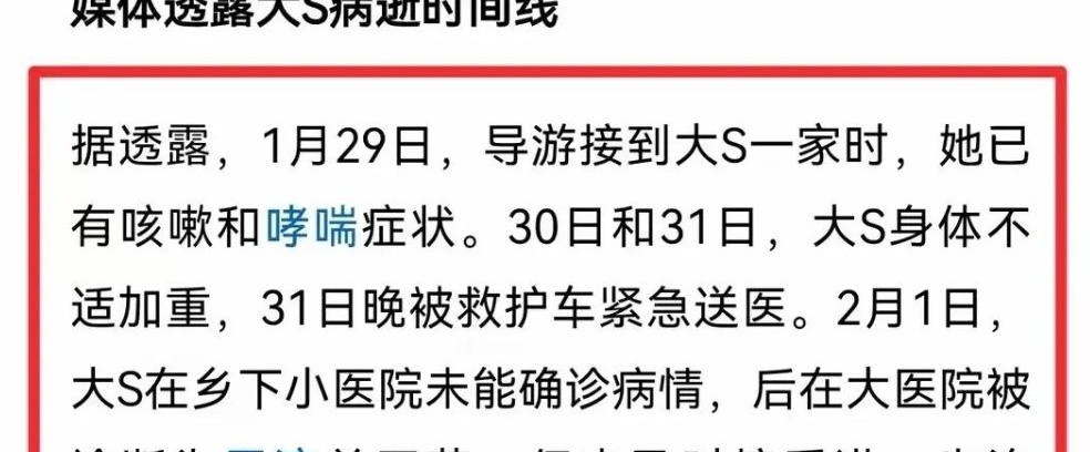 关于大S未能及时获得治疗的原因,有两家媒体总结了两个主要因素。
