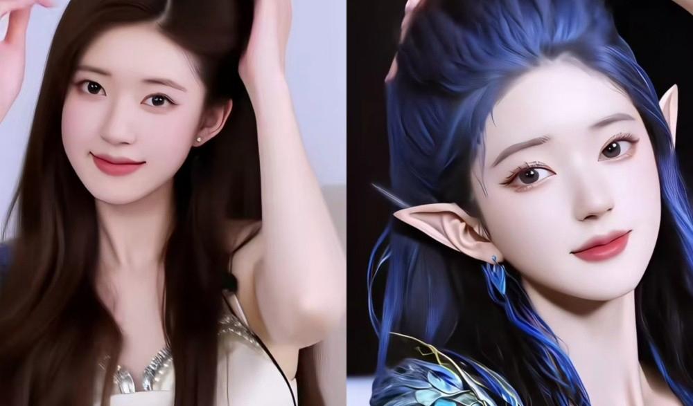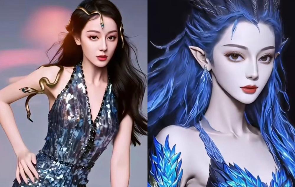 然后也是90后的顶流美艳花迪丽热巴,她之前参加综艺的时候,就换上过蓝发机械姬的造型。蓝色和热巴很适配,不过软件做出来的造型,还是没有真人好看呀。