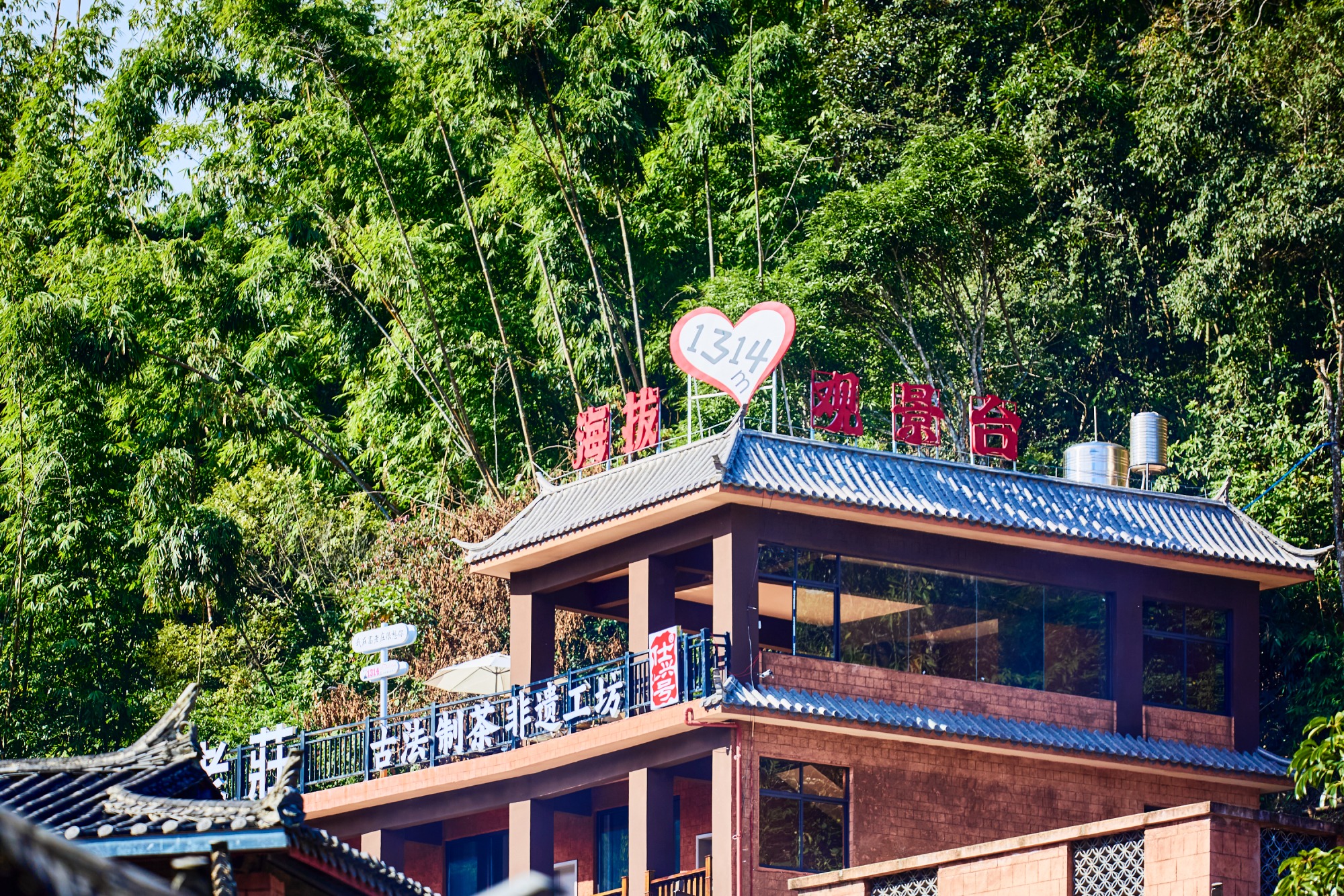 茂盛的竹林前是观赏古村全貌的绝佳打卡地,修长的竹子一片青绿,观景台海拔又是恰到好处的浪漫——1314米,最适合情侣一起打卡。