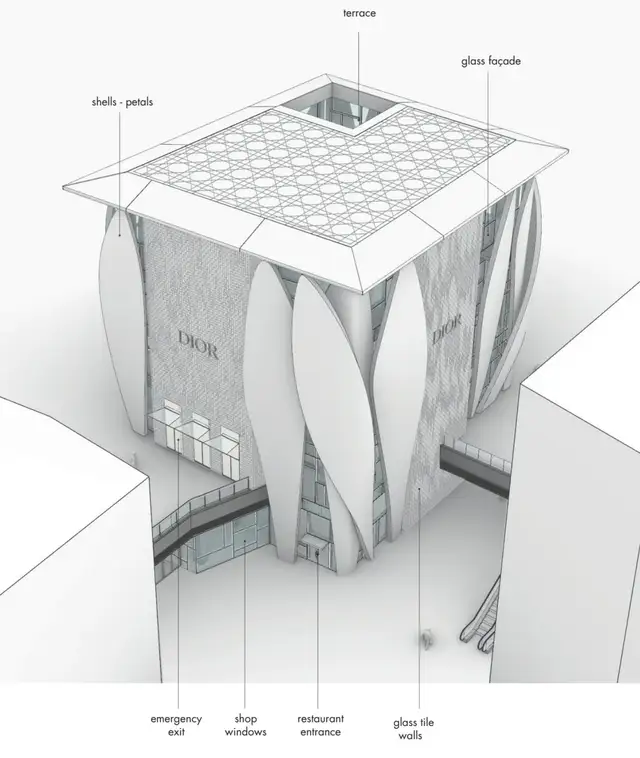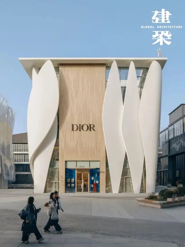 包赞巴克延续了他一贯的“诗意建筑”语言,使这座旗舰店仿佛一件缓缓展开的雕塑。在此之前,首尔与日内瓦的迪奥之家已先后落成,而北京的这一座,则以14片洁白曲面相互环抱,呈现螺旋上升的优雅姿态,远望犹如精心雕琢的珠宝。