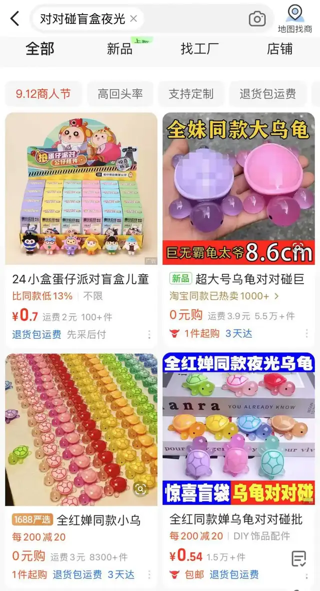 而这些“对对碰”的东西,在1688、拼多多等电商平台上价格极低。
