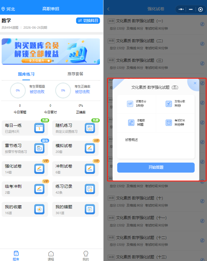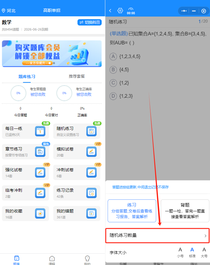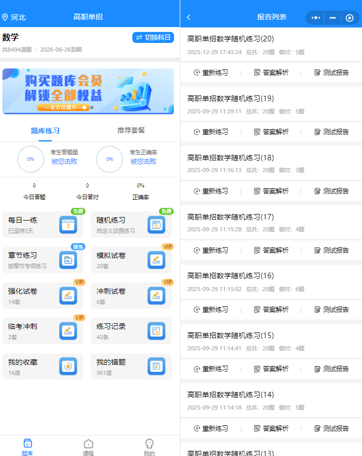 距离单招考试只剩几十天,与其“盲目刷几百道题”,不如“刷对几百道题”。题芽题库的初衷,就是帮各位考生“少走弯路”:选对适配本地考纲的题,用系统的练习模式打牢基础,再通过错题和视频课补短板,这样刷题,才是“有效提分”。
