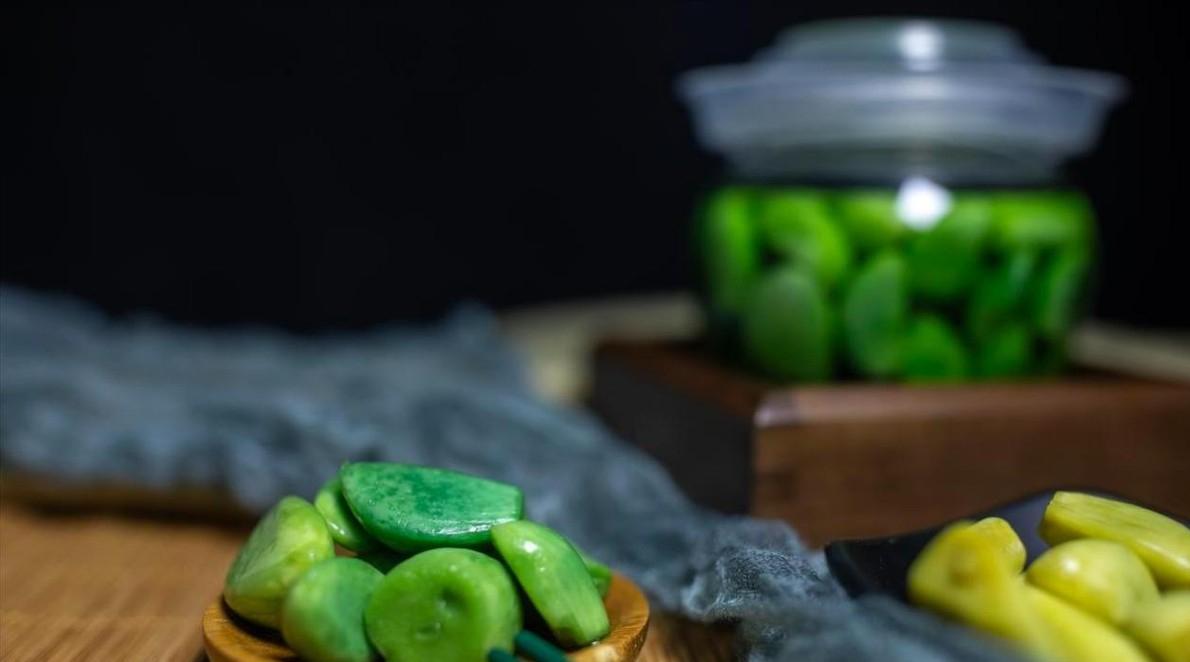 可明眼人一下就能看穿其中的猫腻,正宗的腊八蒜必须选用紫皮蒜搭配米醋,在低温环境下足足发酵15天才能呈现出那种诱人的翠绿。