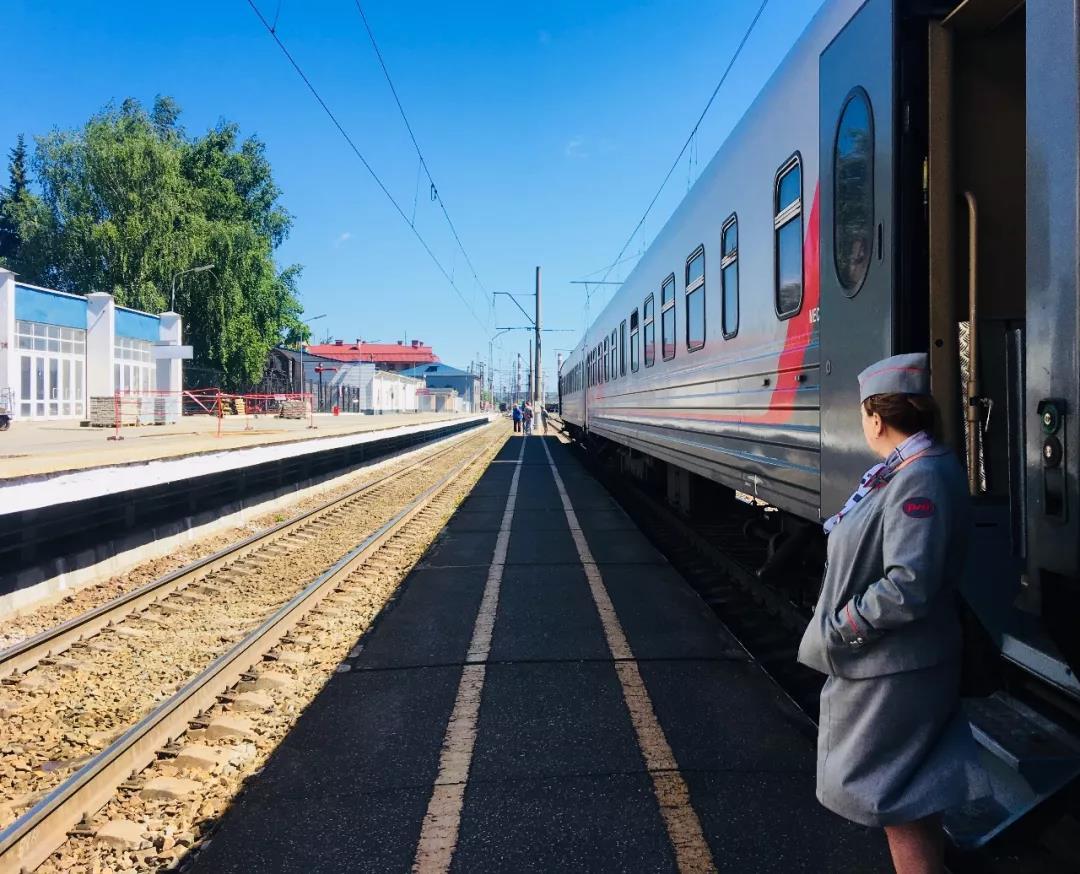 记者采访到列车上的一位女性工作人员,这位列车员全程微笑,打扮得体,她的名字叫伊琳娜。