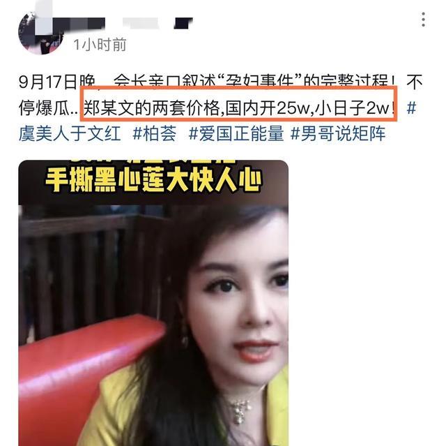 于文红不止在一次直播中骂郑涵文,称她做医美价格中国日本两个价,中国25万,日本两万。