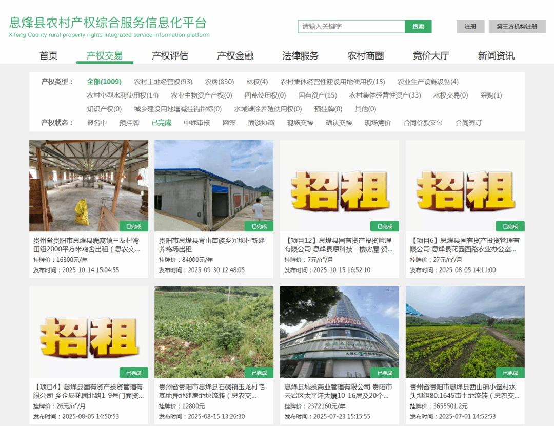 阳光流转,平台交易保障公平公正。针对因“流转不透明”易引发纠纷的问题,息烽县农村产权交易中心严格执行“应进必进、平台交易”原则,将集体经营性资产租赁、资源发包、项目招投标等全部纳入平台统一管理。通过规范交易流程、公开交易信息、全程现场监督,有效杜绝了“人情标”“面子标”等现象,确保交易过程公平公正。截至目前,全县村集体资源资产流转均通过产权交易平台规范完成,实现交易“零投诉、零纠纷”,让集体资产在阳光下保值增值,切实维护了村集体和农民群众的合法权益。