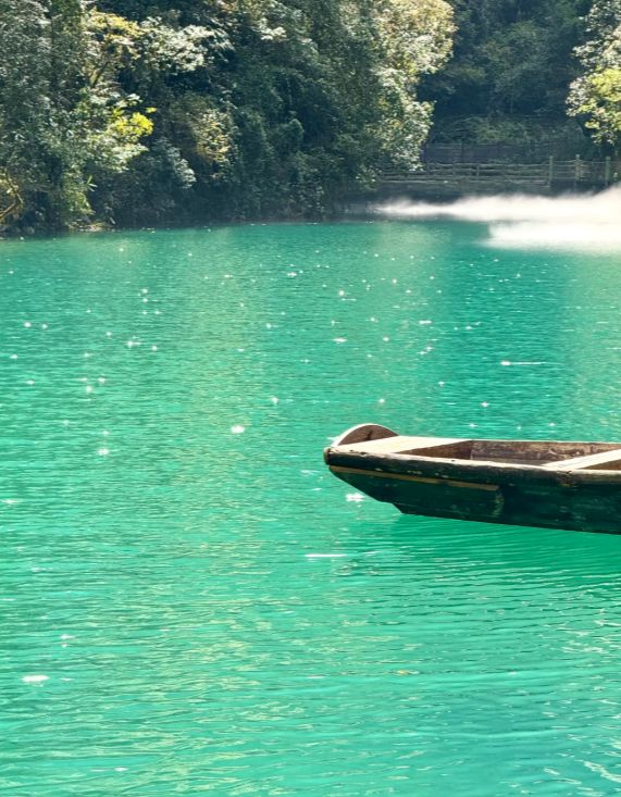 回程时阳光正好移入峡谷。当船划过某片特定水域,阳光穿透水面在河床投下粼粼光斑,整条船仿佛悬浮在光的矩阵里。此时才理解“中国仙本那”美誉的真意——不是简单比拟,而是那种超现实的空灵感。出谷前回望,峡谷入口如绿色画框,框住一方流动的碧玉。这趟航行不过两小时,却像在另一个时空里,做了一场关于纯净的梦。