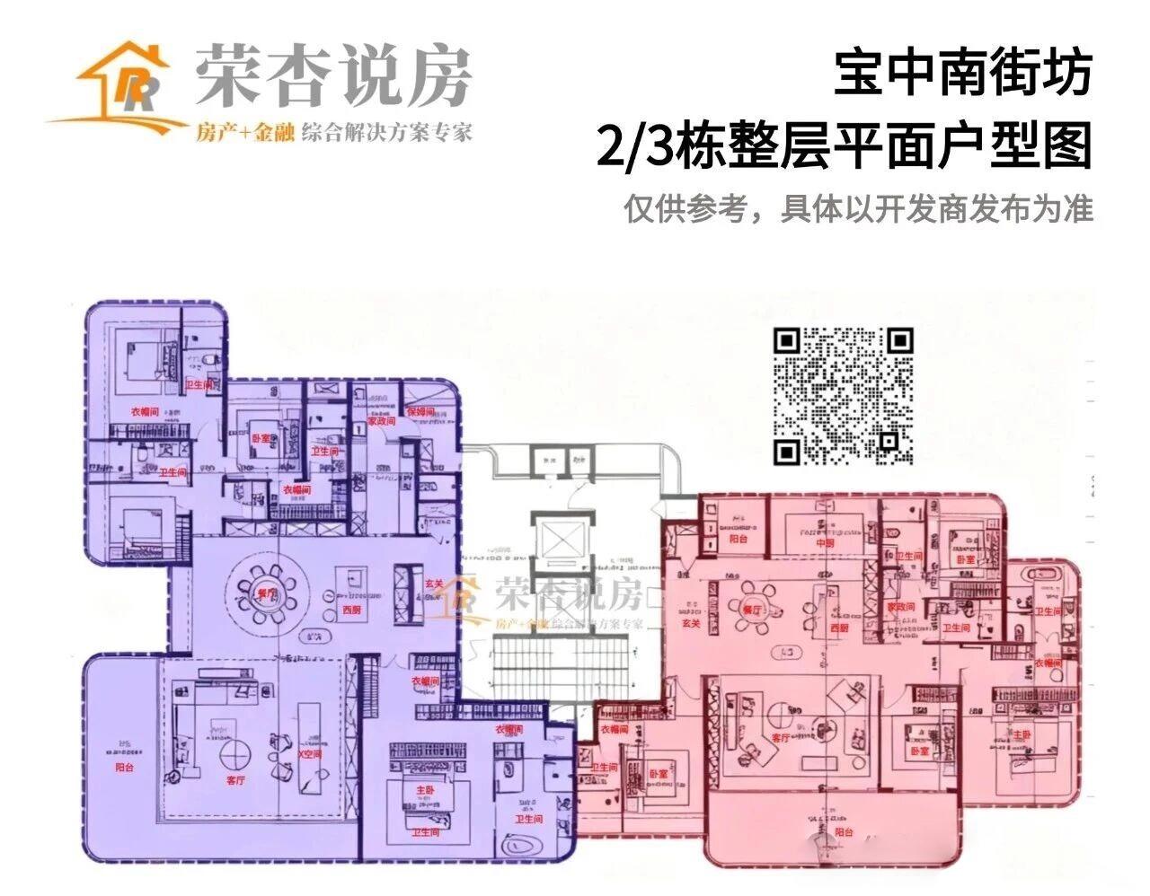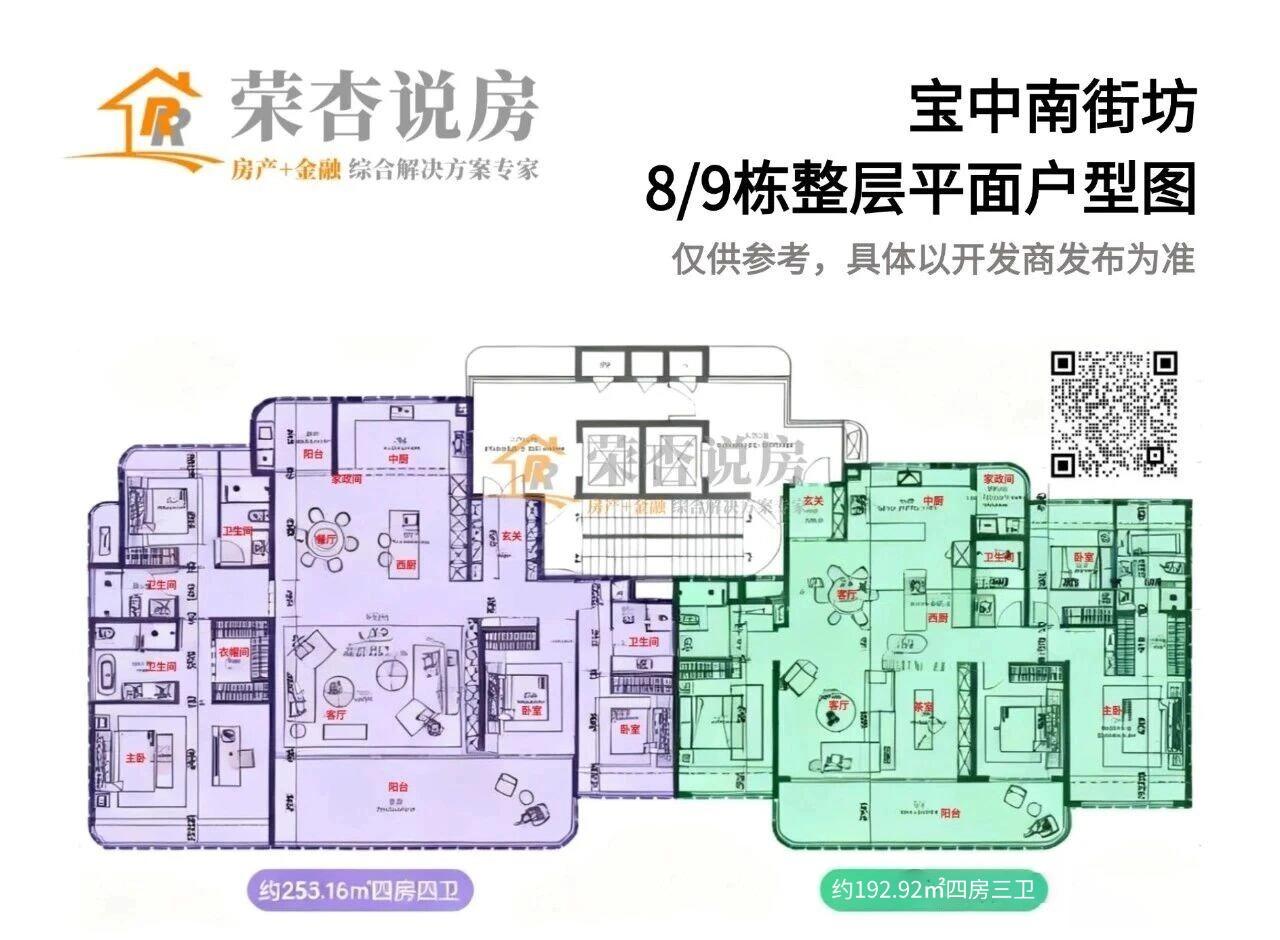 宝中「观潮府」,也就是去年万众瞩目的流拍地王南街坊项目,重新上拍后由招商+华润拿下,限高(22-24层)、低密(容积率3.4)、一线看海、纯大户型,得房率近100%,品质超高,生来就是顶豪。