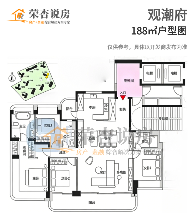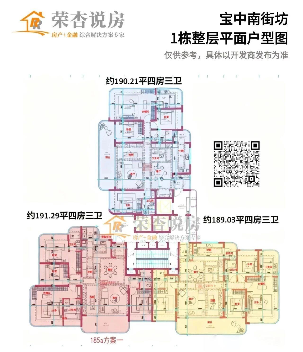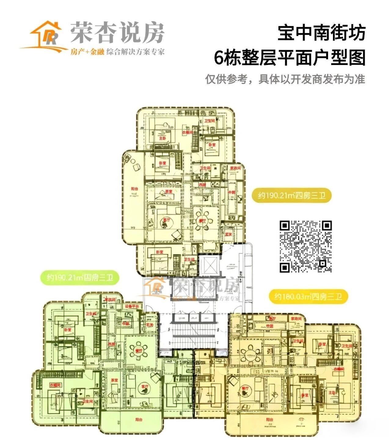 6单元为24层高,3梯3户,全部为188㎡4+1房三卫。