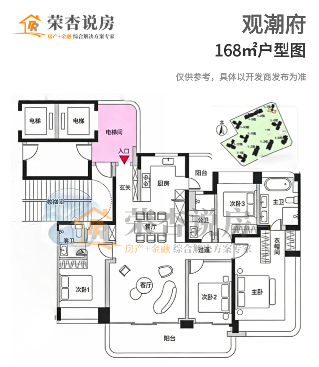 7单元为24层高,3梯3户,143㎡四房两卫+168㎡四房三卫。