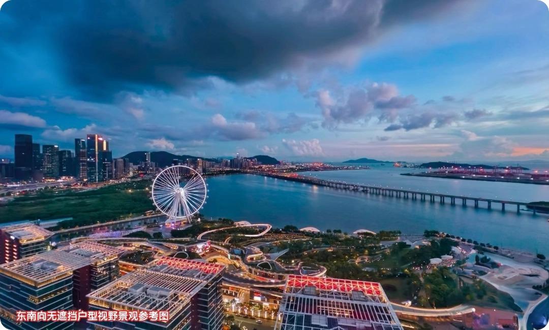 既可以看欢乐港湾景观、又能看前海湾海景、远处还有前海三湾城市天际线景观。