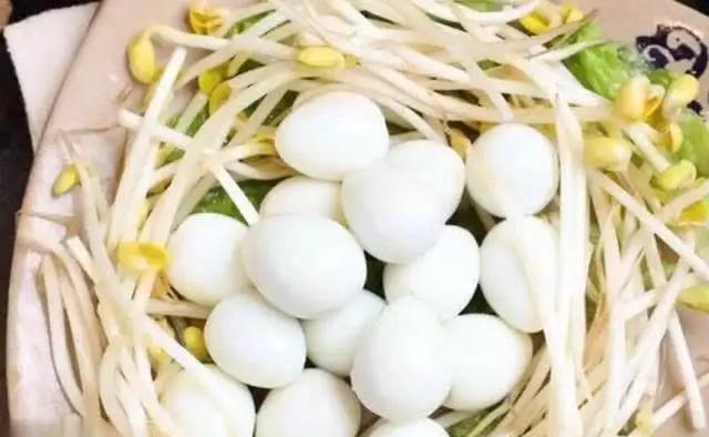 材料:鹌鹑蛋10个、豆芽、姜末、盐、食用油