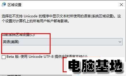 将 “当前系统区域设置” 改为 “英语”,点击 “确定”。