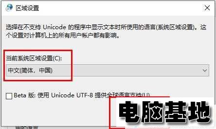5、再次打开“更改系统区域设置”,将语言设置回“中文”即可。