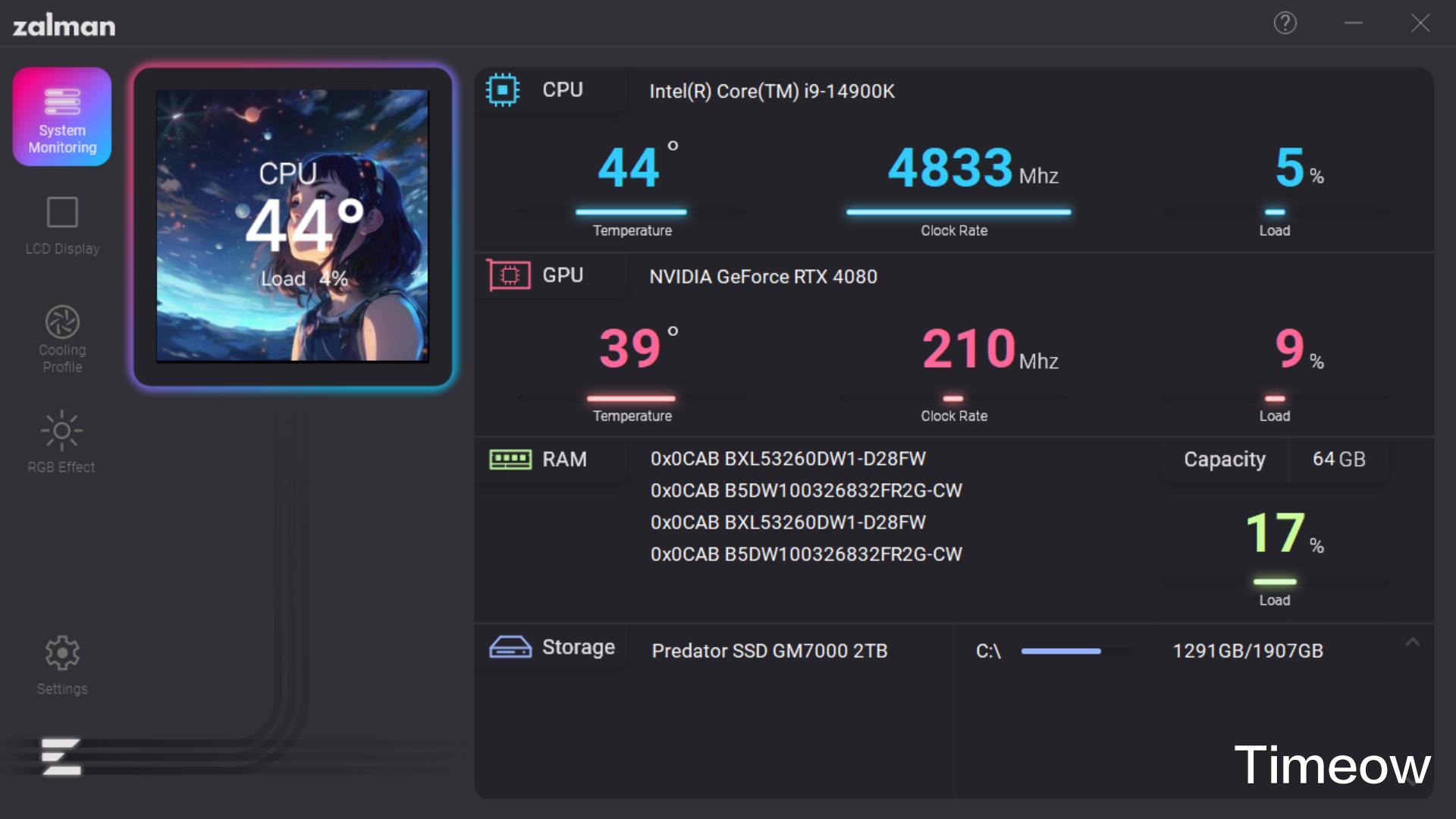 但在我安装官方zalman OZ这个软件后,可以在LCD Display处更换自己喜欢的gif、甚至视频上去,比如: