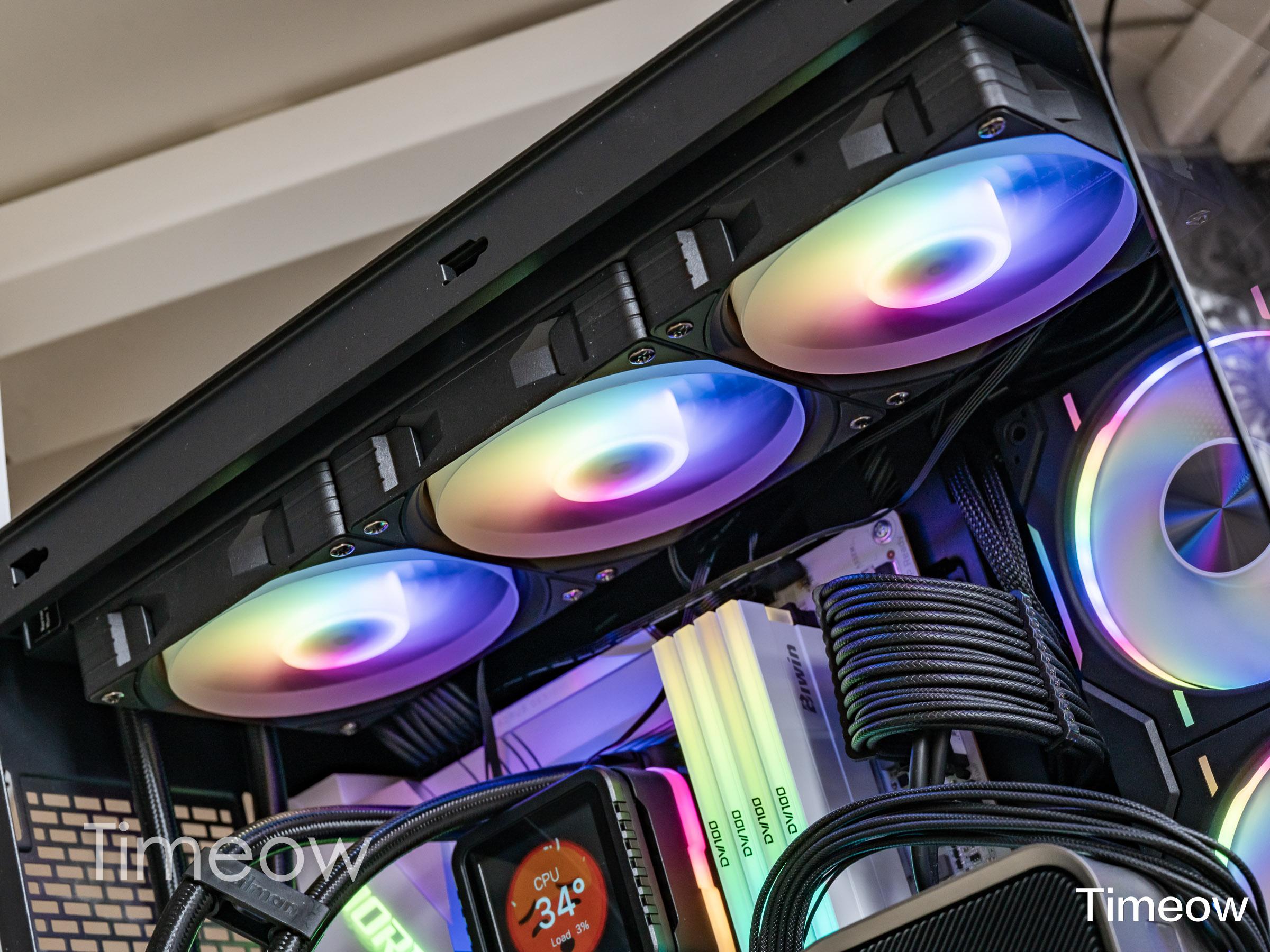 而且三个风扇支持菊花链连接,之间也用标配短线连了起来,减少凌乱线材,适合追求整洁的高端玩家。