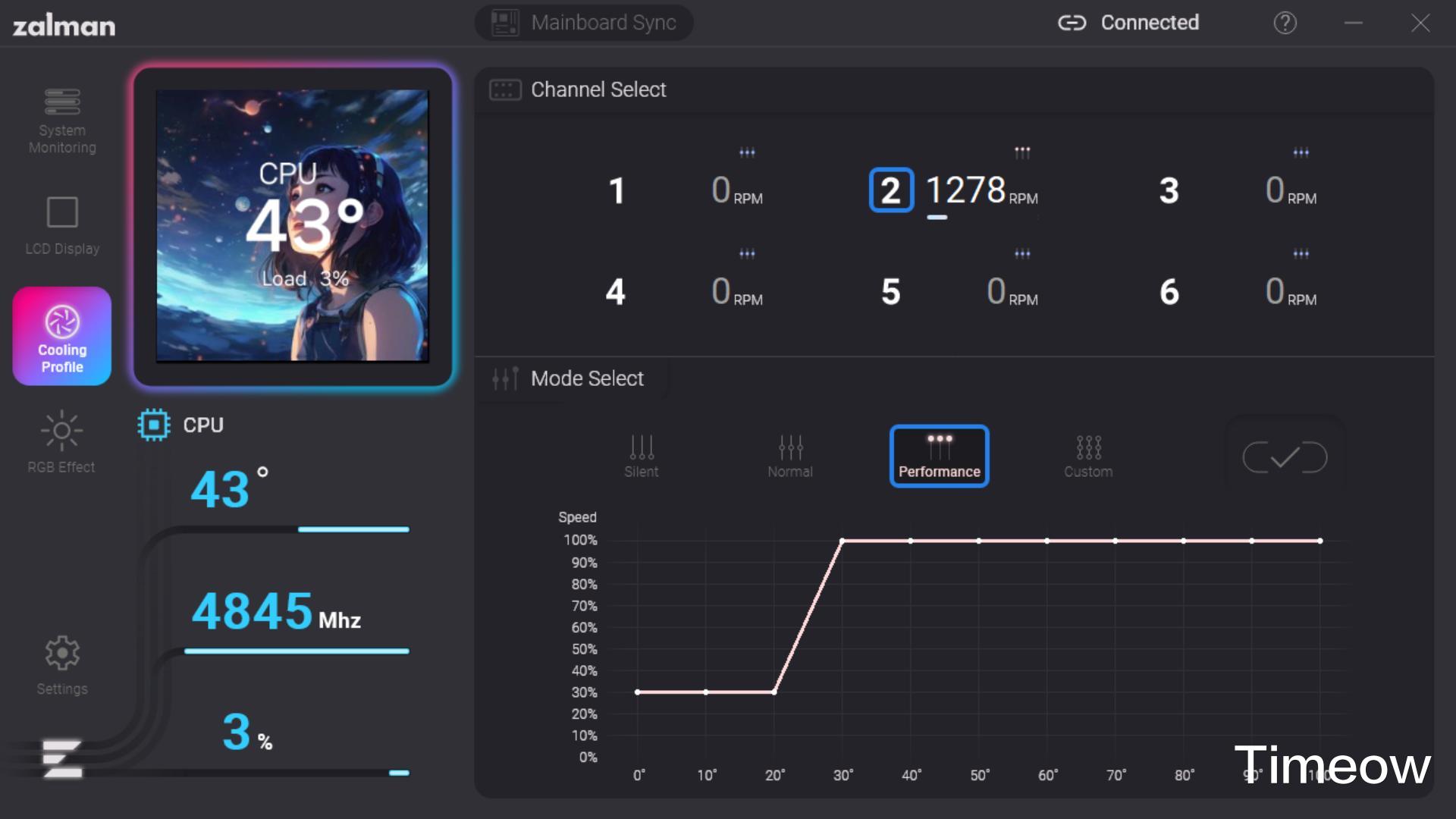 他可以轻松设定连接在控制盒上的风扇转速,包含静音(Silent)、普通(Normal)和性能(Performance)模式,还可以根据自己的需求和喜好手动调节(Custom)风扇曲线。