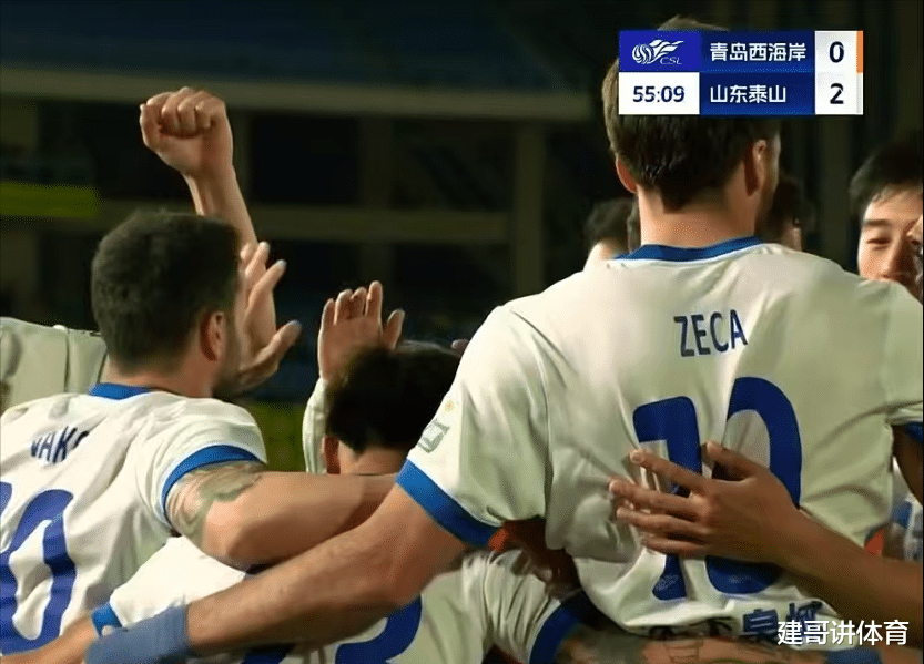 下半场的比赛,山东泰山队开场就做出了2个换人举动,谢文能的出场立马让山东泰山队踢出了一次高质量的反击,在比赛的第51分钟,山东泰山队8号马德鲁加中场抢断青岛西海岸当家外援戴维森的皮球,反击过程中克雷桑分边找到刚刚出场的谢文能,谢文能拿球后显出了他的高球商,没有选择浪射的谢文能,轻巧的传中让卡扎伊什维利直接推射空门,把场上的比分变成2-0。