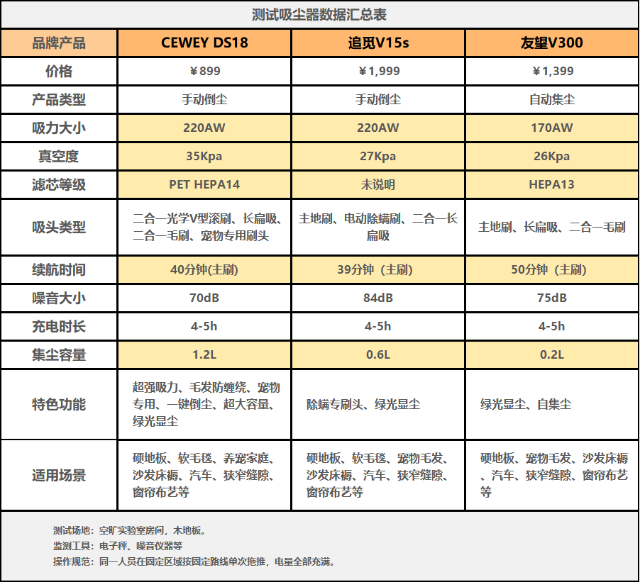 最近我把价位之间有差距,且也是最近热度不低的:追觅V15s、友望V300和CEWEY DS18无线吸尘器都买回到家里,也连续用了好几天,把日常要清洁的地方都实测了一遍。