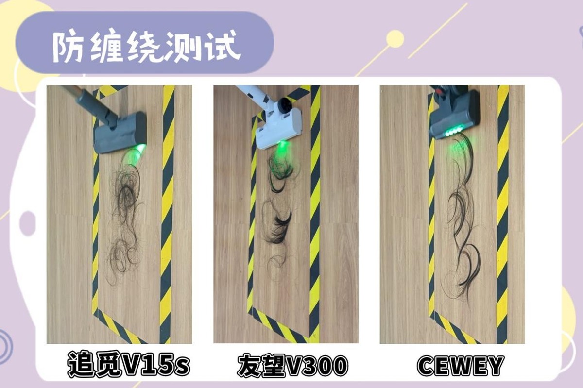 家用吸尘器十大排名榜怎么选?很多人在用无线吸尘器清理头发和宠物毛发的时候,最痛苦的就是刷头容易缠头发、毛发,每次清洁完都要花时间清理,而且长时间不去清理还会影响后续的吸力效果,所以本次测试,重量放在防缠绕效果上,主要模拟家庭常见的长发的清洁场景,在相同地面和相同发量条件下,统一用同一档位推进清扫,清洁完毕后主要观察是否出现明显的缠绕,从实际的使用角度去判断各产品的防缠绕设计是否有效。