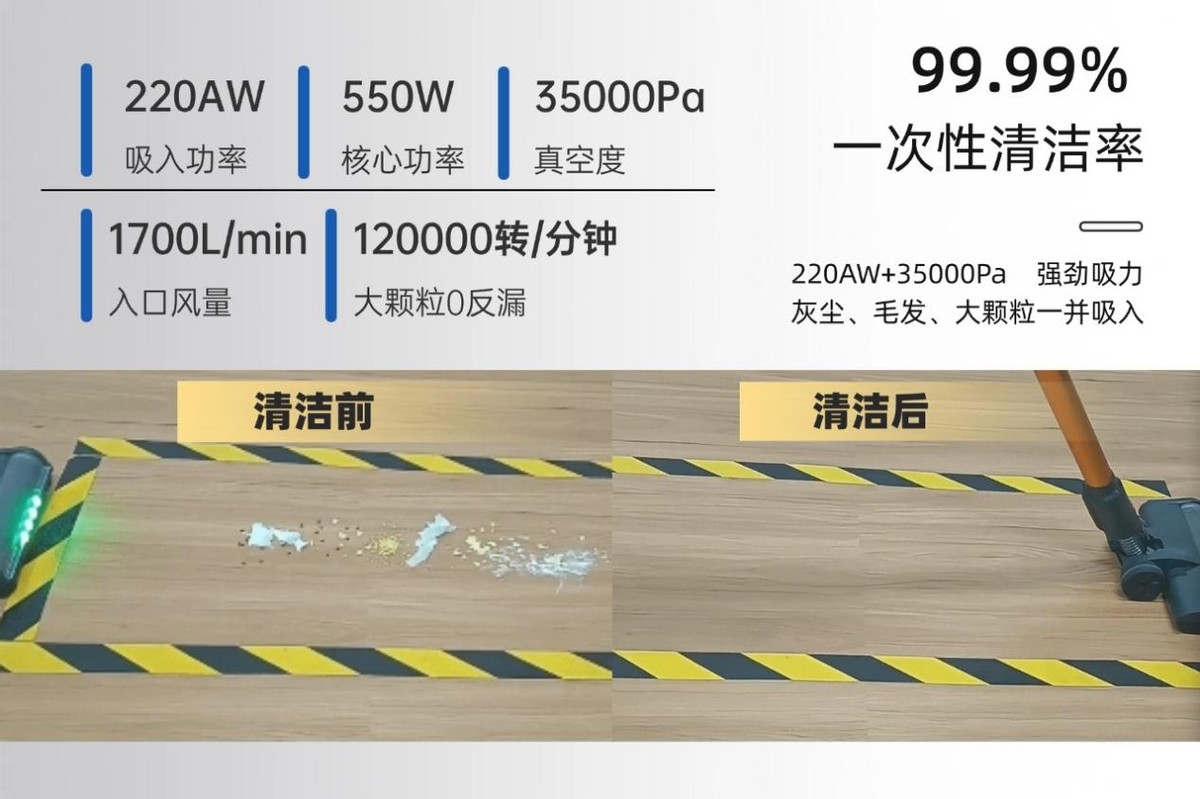 另外,配合官方的 HEPA 全机过滤系统,可捕获 ≥ 99.99% 颗粒。面向对洁净度与操作便利性要求高的用户,这款吸尘器在配置与体验上均表现出色。