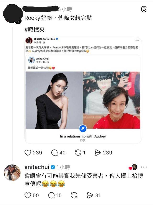 同时在早前还有不少网友是替郑健乐感到不值,不过崔碧珈也是不甘示弱,回应网友表示:会不会有可能其实我才是受害者,被人摆上台博宣传呢?