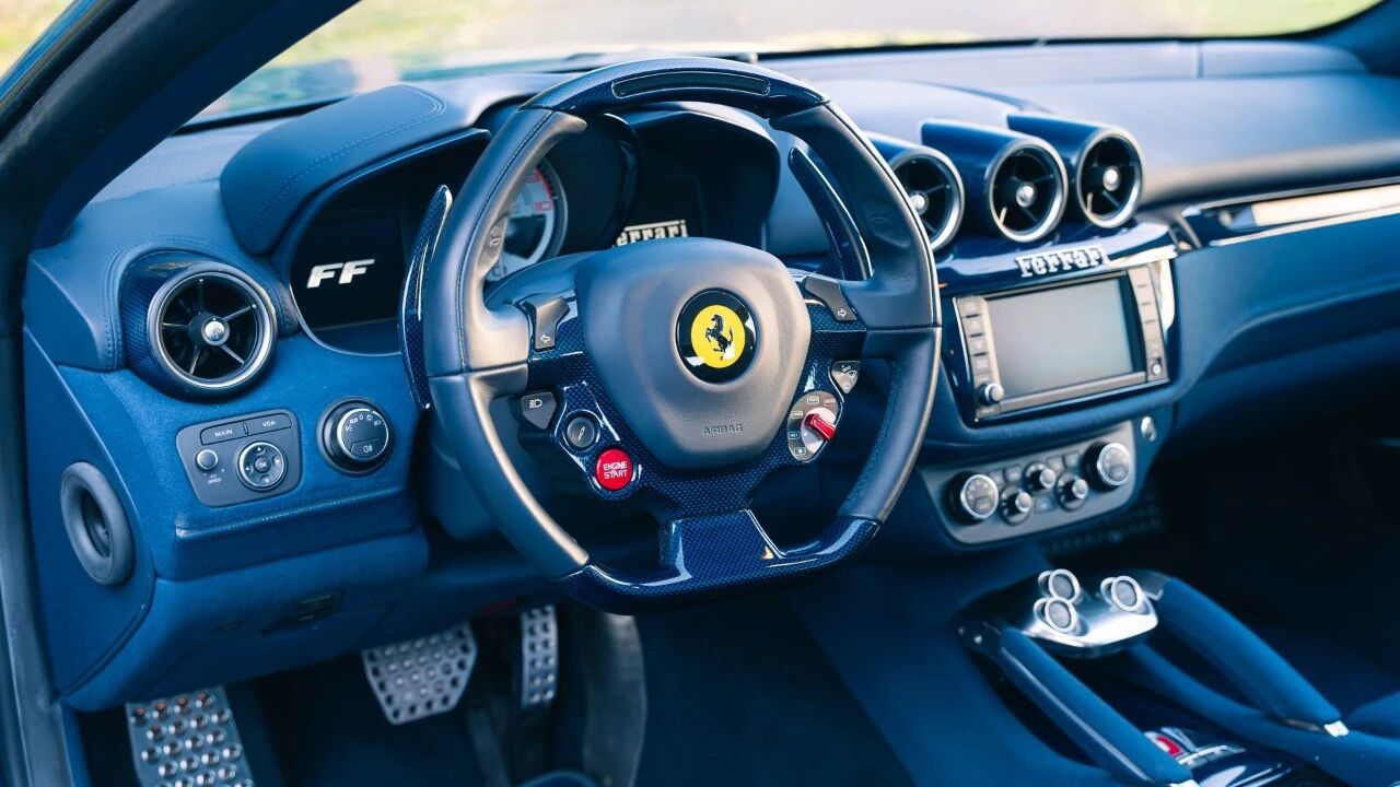 而在2026年1月28日的巴黎RM苏富比拍卖会上,一台更为特殊的2013款法拉利FF即将登场——它是时任法拉利母公司菲亚特集团主席、现任法拉利主席约翰·埃尔坎的专属定制座驾,身披罕见的“新蓝色”涂装,内饰匹配同色系织物座椅,里程表仅16037公里,堪称猎装跃马中的顶奢孤品。