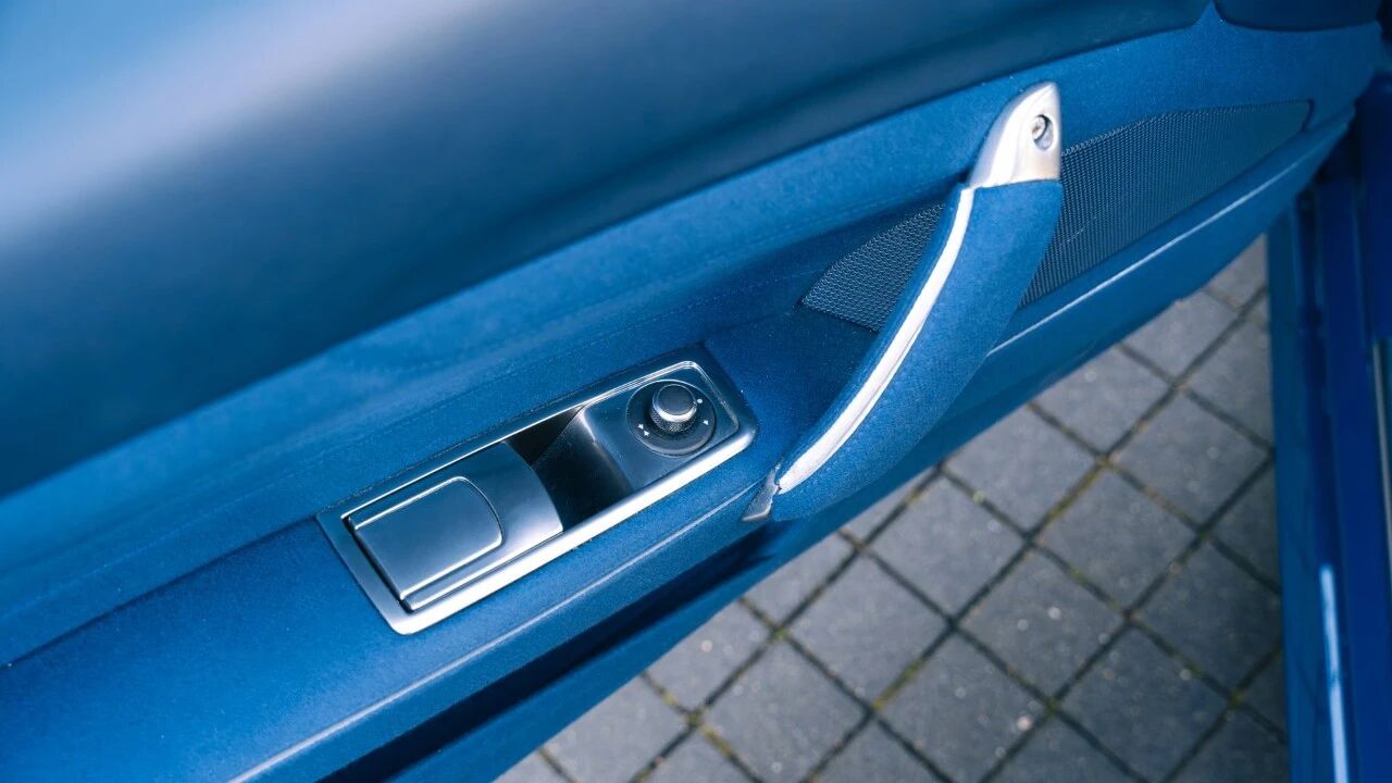 内饰的精致感,藏在每一处细节里。座椅头枕绣有经典跃马徽标,座椅边缘点缀白色对比缝线,门板与中控台同样采用蓝色织物与皮革拼接,再辅以蓝色碳纤维饰板,运动感与豪华感兼具。