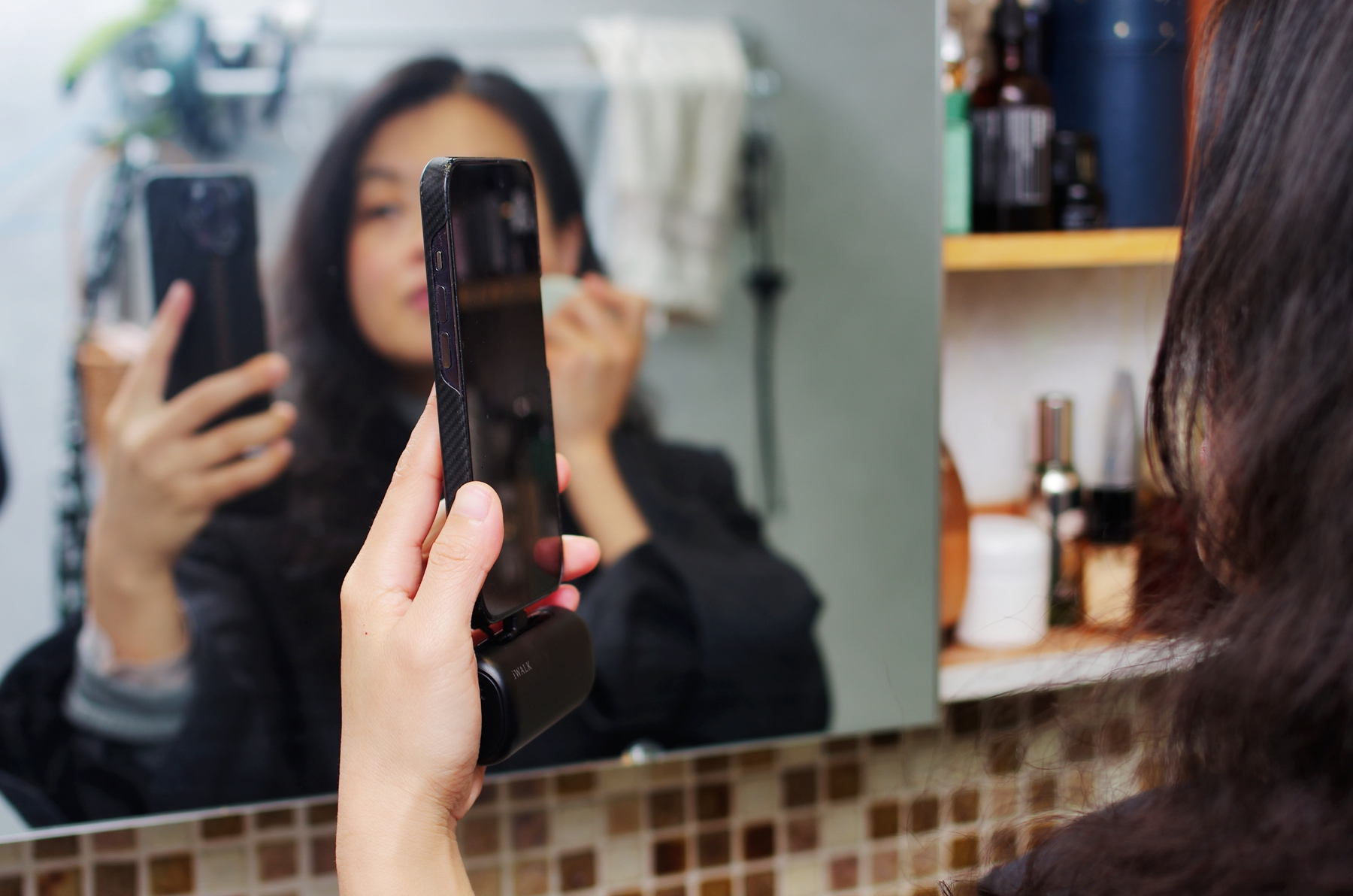 iWALK爱沃可双切换头胶囊充电宝因为够小够轻,所以只需要直接插上就能方便的补充电量,没有充电线约束,边充电边玩手机也很方便,正面的指示灯可以实时查看剩余电量。