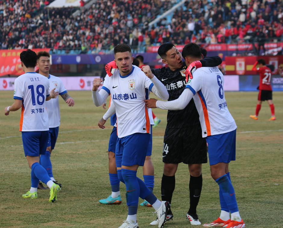 第76分钟,泰山队再次领先,右侧谢文能和李源一打出配合,李源一禁区内倒三角传中,马德鲁加包抄到位将球打进,比分改写为2-1。马德鲁加进球后非常兴奋,朝着望岳新闻的镜头不断怒吼,王大雷也冲到了前场和队友一起庆祝,拥抱马德鲁加送上鼓励。崔康熙在比分领先的情况下一直没有主动调整,替补席的球员站在场边,观察着场上的局势。第86分钟,马德鲁加内切射门偏出。此时,崔康熙才选择换人,早已经在场边做好准备的买乌郎换下黄政宇。