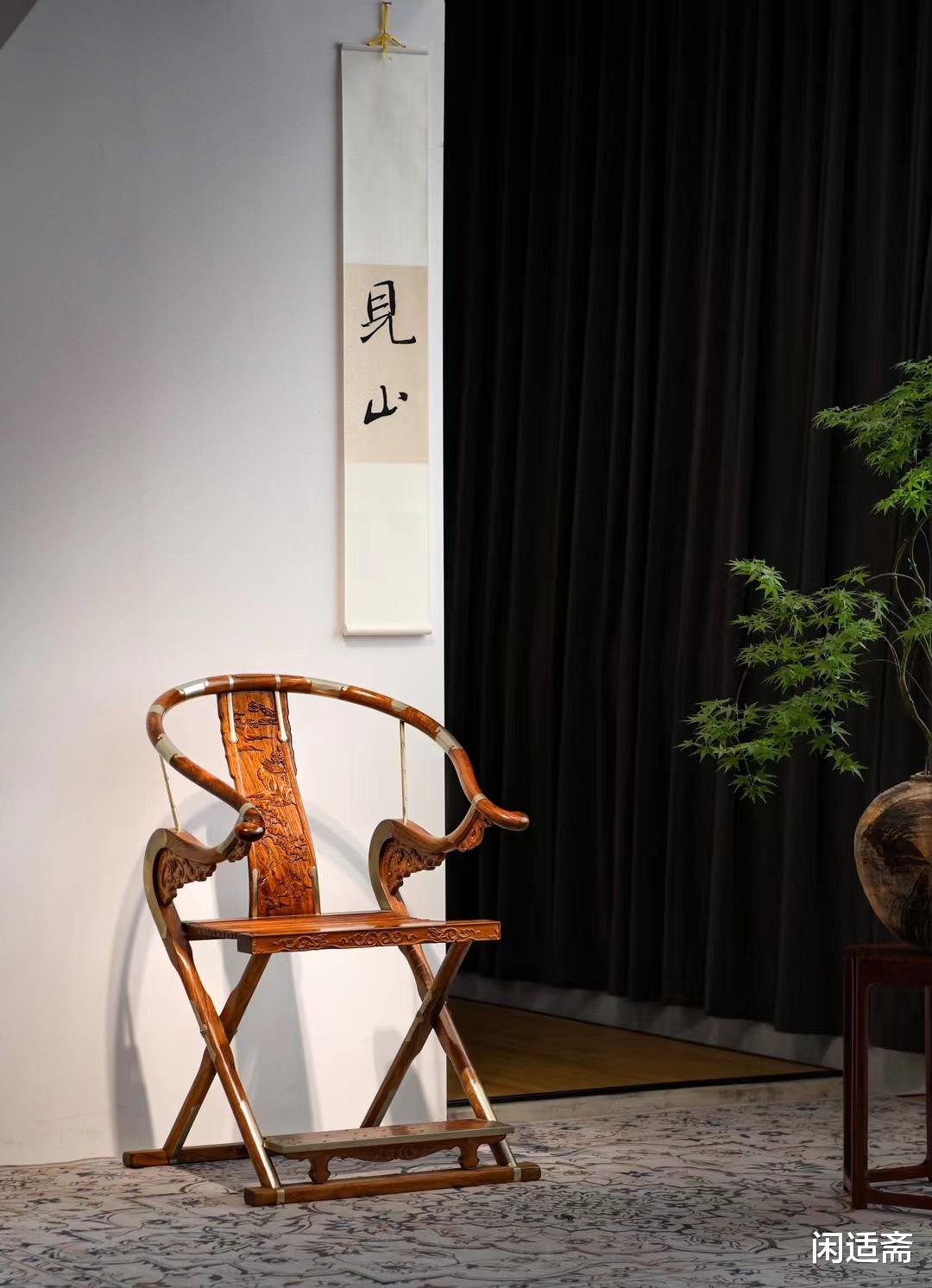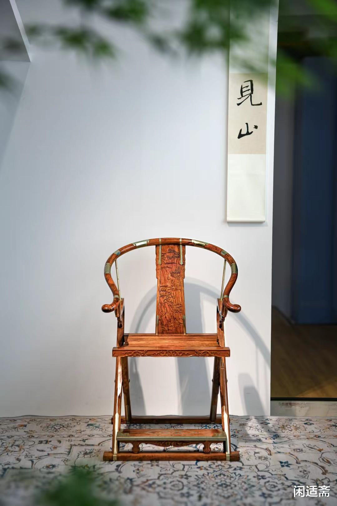 珍藏品 黄花梨雕山水交椅