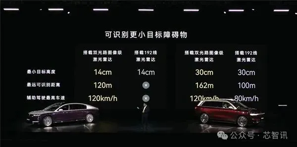 具体性能上,可在120米外的远距离识别14cm高度物体,该高速也是大部分车辆的底盘高度,能有效避免异物导致障碍物托底的危险场景。