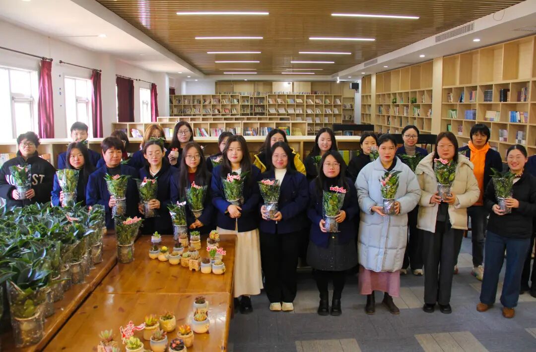 为庆祝三八国际劳动妇女节,3 月 6 日,学校为全体女教职工送上精心准备的暖心绿植礼品,愿一抹盎然绿意,为忙碌的工作增添生机,为温馨的生活注入暖意。