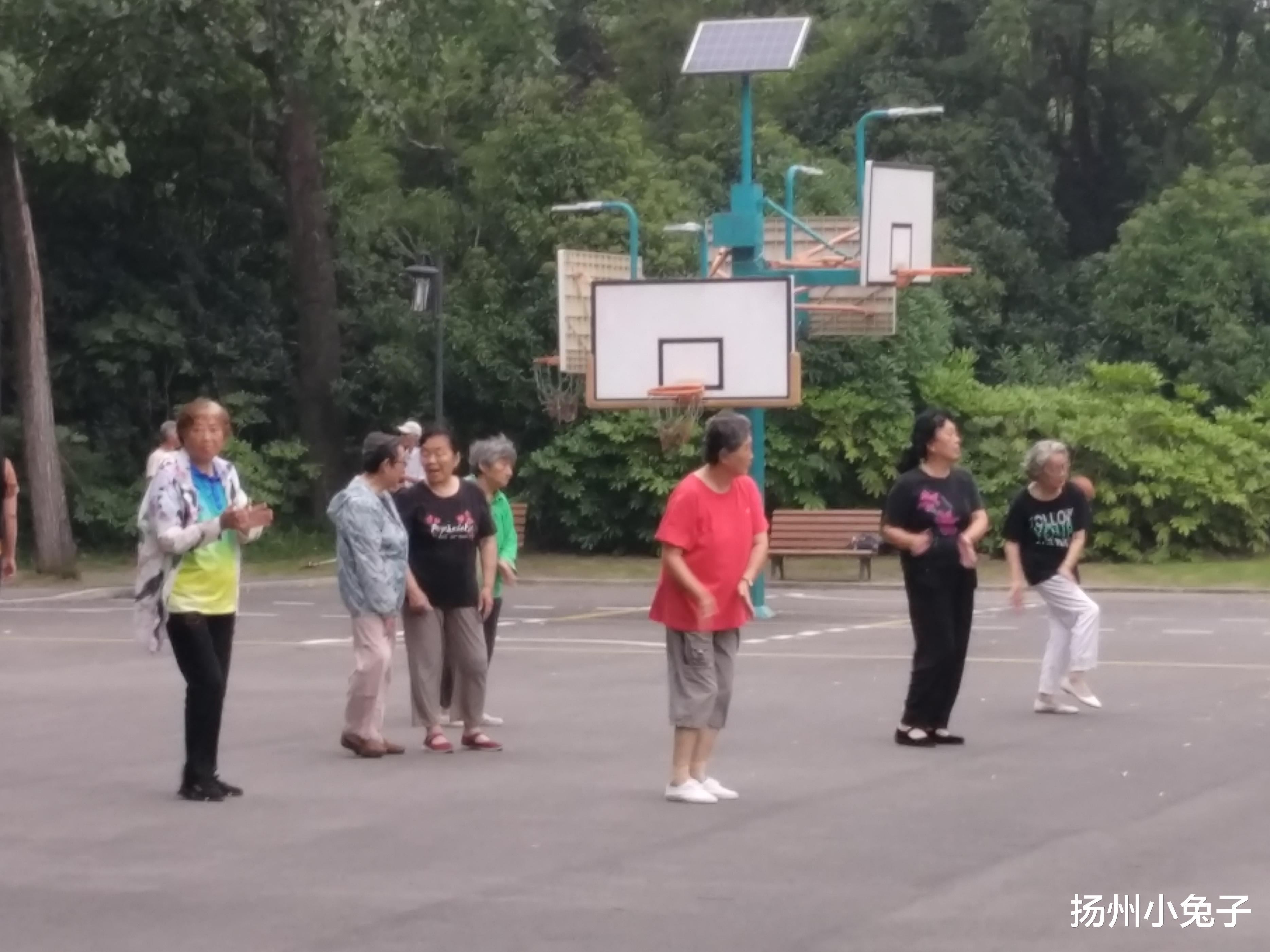 简单的居家服,色彩不同于旅行时的过饱和。上下左右的动作,协调有致,很舒服。这群中老年的女性,犹如盛开在盛夏清晨的花儿一般,带来一阵异样的美感。