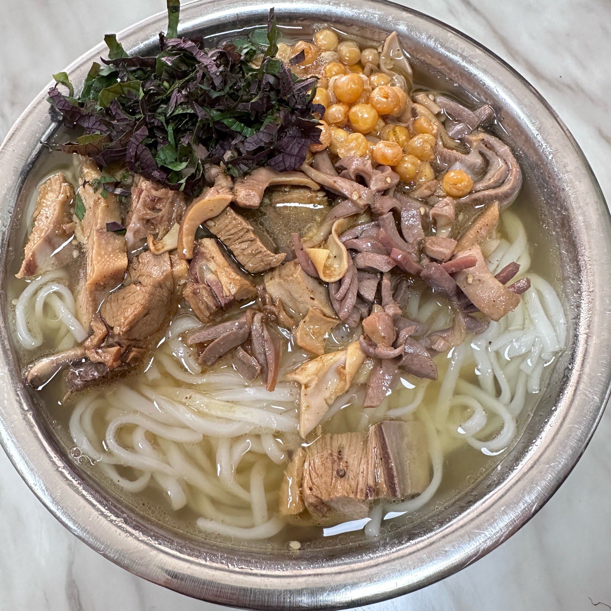生料粉是玉林最具代表性的美食。将生料(新鲜猪肉、猪肝、粉肠等)放入滚烫的汤中快速烫熟,再加入切粉同煮,出锅时撒上葱花和香菜。吃生料粉一定要先喝汤,感受那熬了数小时的鲜味顺着喉咙滑入胃里的温暖,再享受饱吸汤汁的滑韧米粉,最后把鲜嫩的生料一扫而光。