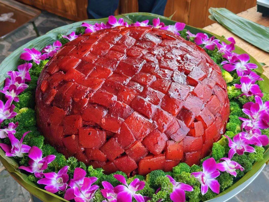红谷四方肉是贵港最具代表性的传统名菜,制作技艺始于明末清初,至今已有一百多年历史,2024年被列入港北区非物质文化遗产。出锅的红谷四方肉,晶莹剔透的油脂包裹着鲜嫩的肉块,入口即化,肥而不腻,瘦而不柴,咸甜适口,香气四溢。